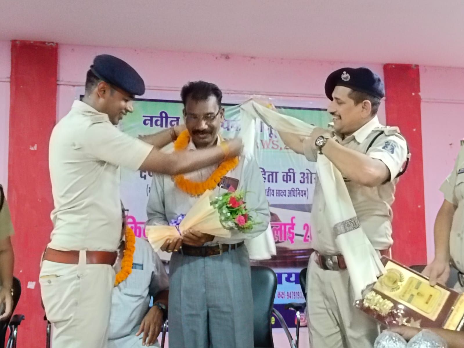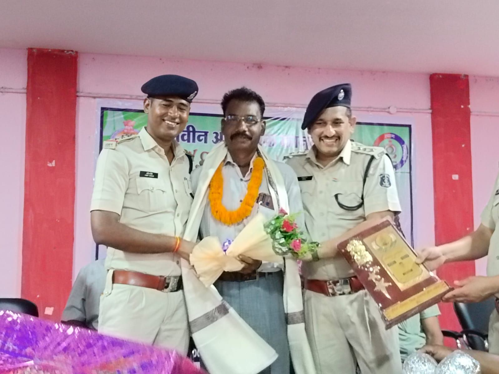 *01 जुलाई रायगढ़* । दिनांक 30 जून 2024 को जिला पुलिस में कार्यरत सहायक उप निरीक्षक बालकृष्ण डनसेना थाना भूपदेवपुर, प्रधान आरक्षक दौलत सिंह सिदार रक्षित केंद्र और आरक्षक फुलजेंस एक्का रक्षित केंद्र रायगढ़ अपनी 62 वर्ष अधिवार्षिकी आयु पूर्ण कर सेवानिवृत हुए जिन्हें आज पुलिस सामुदायिक भवन में आयोजित “क्रियान्वयन उत्सव” कार्यक्रम दौरान पुलिस अधिकारियों द्वारा शाल, श्रीफल, मोमेंटो व पुष्प माला के साथ स्वागत करते हुए, उनके भविष्य के लिये मंगल कामना की गयी। डीएसपी श्रीमती अनामिका जैन ने उन्हें उनके अनुभव के आधार पर अपने साथियों का मार्गदर्शन बनने की सलाह दी और रिटायरमेंट के बाद जीवन की नई परी की शुरुआत के लिए शुभकामनाएं दिया गया । डीएसपी अभिनव उपाध्याय ने उनकी सेवाओं के लिए धन्यवाद ज्ञापित किया और पुलिस परिवार को आगे भी उनका ही परिवार बताएं और जब भी किसी प्रकार की समस्या हो तो मिलकर अपनी समस्याओं का निदान पाने कहा गया । शुरुआत कार्यक्रम में उपस्थित सभी ने सेवानिवृत्त पुलिसकर्मियों के स्वस्थ एवं दीर्घायु की शुभकामनाएं दिया गया ।