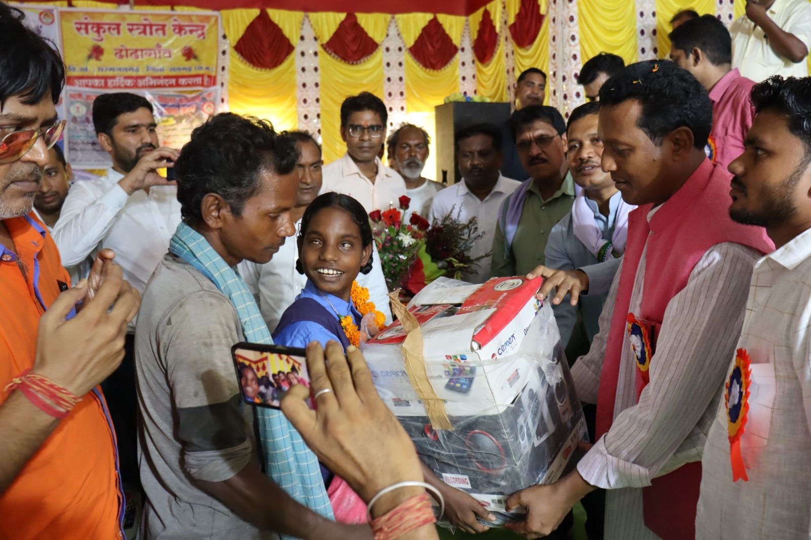 रायगढ़, 6 जुलाई2024/ सांसद श्री राधेश्याम राठिया के मुख्य आतिथ्य में आज धरमजयगढ़ में विकासखंड स्तरीय शाला प्रवेश उत्सव का आयोजन मंगल भवन धरमजयगढ़ में किया गया। मौके पर उन्होंने नव प्रवेशी बच्चों को तिलक-चंदन लगाकर उनका स्वागत किया। आशीर्वाद स्वरुप उन्होंने मिठाई व चॉकलेट खिलाकर कर नि:शुल्क पाठ्य पुस्तक गणवेश व सरस्वती साइकिल का वितरण किया। इस अवसर पर कार्यक्रम की अध्यक्षता विधायक श्री लालजीत सिंह राठिया ने किया। इस दौरान दिव्यांग बच्चों को व्हीलचेयर साउंड सिस्टम, मोबाइल हियरिंग किट का वितरण किया गया। गत वर्ष के 10 वीं व 12 वीं प्रतिभावान बच्चों को सांसद व विधायक ने पुष्प गुच्छ एवं शील्ड प्रदान कर सम्मानित किया।