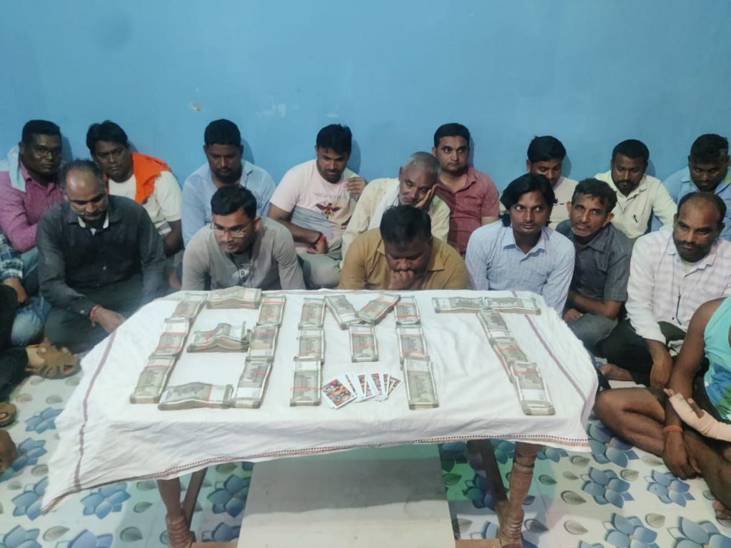 को रुपये पैसे का दाव लगाकर जुआ खेलते पकड़े जाने पर 23 जुआडियानो के कब्जे से जुमला 12,37,500/- नकदी रकम, 52 पत्ती ताश, तिरपाल को जप्त कर आरोपियों का कृत्य धारा 3(2) छ ग जुआ प्रतिषेध अधिनियम का घटित करना पाए जाने से अपराध क्रमांक 49/24 धारा 3(2) छ ग जुआ प्रतिषेध अधिनियम कायम कर विवेचना की जा रही है।