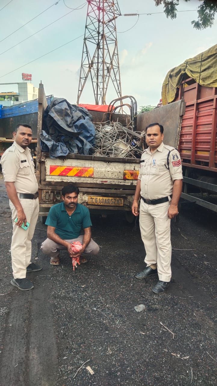*18 जुलाई, रायगढ़* । पुलिस अधीक्षक श्री दिव्यांग कुमार पटेल के दिशा निर्देशन पर अवैध कबाड़ पर जिले में लगातार कार्यवाही जारी है । इसी क्रम में कल दिनांक 17/07/2024 के दोपहर थाना प्रभारी कोतरारोड़ निरीक्षक त्रिनाथ त्रिपाठी को उनके लगाये मुखबीर से सूचना मिली कि एक सफेद रंग के पिकअप वाहन में लोहे छड़ के टुकड़े अवैध कबाड़ को धनागर की ओर से रायगढ़ की ओर जाना बताया । तत्काल थाना प्रभारी अपने स्टाफ के साथ कोसमनारा तिराहा पर नाकेबंदी कर वाहनों की जांच किया गया । इस दौरान सफेद रंग के पिकअप क्रमांक सीजी 13 ए.आर.- 5781 को रोककर चेक किया गया । ड्राइवर ने अपना नाम *राजेश गुप्ता पिता विश्वनाथ गुप्ता उम्र 42 साल निवासी गढउमरिया थाना जूटमिल रायगढ़* का रहने वाला बताया । ड्रायवर से वाहन में लोड लोहे के कबाड़ के संबंध में पूछताछ कर कागजात मांग करने पर वाहन चालक ने कोई कागजात होना नहीं बताया । पुलिस टीम द्वारा वहां में रखी संपत्ति चोरी के होने के संदेह पर जप्ती कर कबाड़ का वजन कराये जो करीब 1 टन कबाड़ कीमती- ₹20,000 पाया गया । अवैध कबाड़ मय पिकअप वाहन (*जुमला कीमती-₹4,20,000*) जप्त कर वाहन चालक राजेश गुप्ता पर थाना कोतरारोड में इस्तगासा क्रमांक 04/2024 धारा 35(क),(ड) BNSS, 303(2) BNS के तहत कार्यवाही की गई है । कार्यवाही में थाना प्रभारी कोतरारोड़ निरीक्षक त्रिनाथ त्रिपाठी, प्रधान आरक्षक बाबूलाल पटेल, आरक्षक टिकेश्वर यादव शामिल थे ।