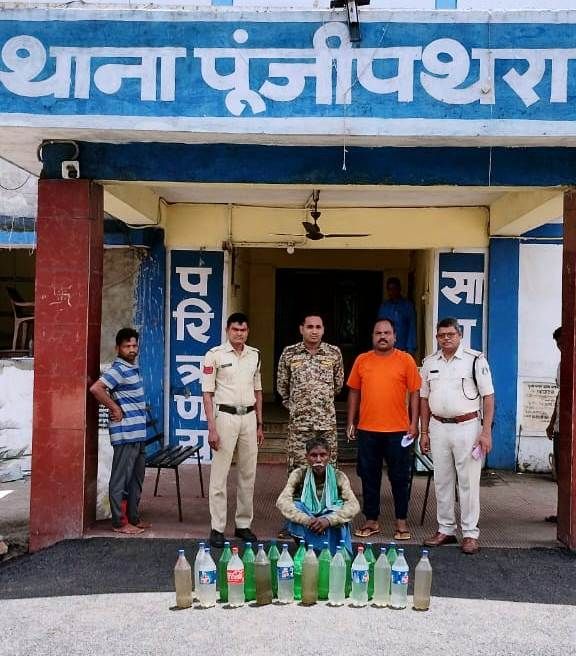 *अवैध शराब बेचने वाले पर पूंजीपथरा पुलिस ने की कार्रवाई, 40 लीटर अवैध महुआ शराब के साथ आरोपी गिरफ्तार*….