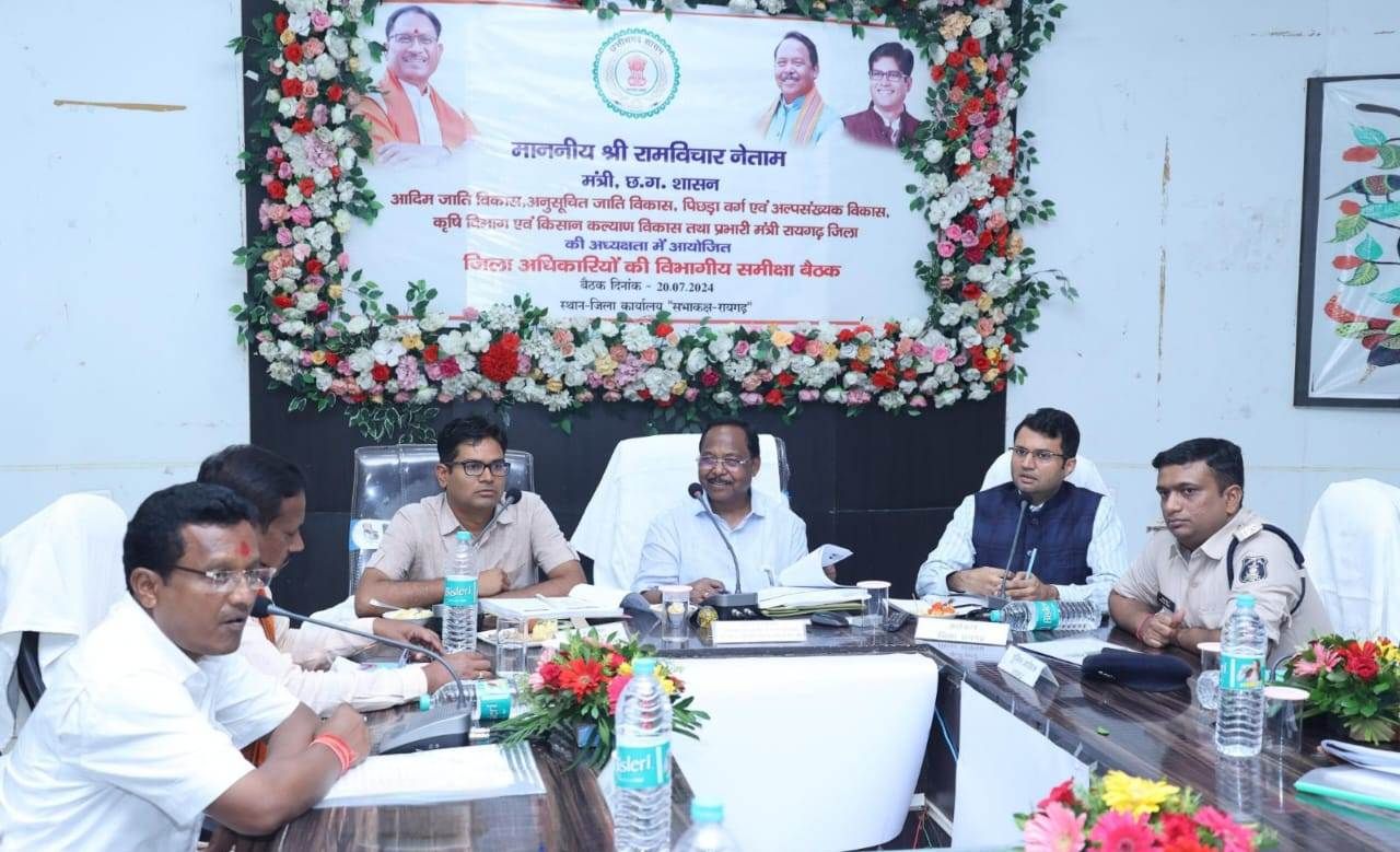 प्रभारी मंत्री श्री नेताम ने अधिकारियों से कहा कि योजनाओं का क्रियान्वयन पूरे समर्पण निष्ठा और पारदर्शिता के साथ किया जाए। कामों को समयबद्ध तरीके से पूरा किया जाना है, अधिकारी अपने काम की स्पीड बढ़ाएं। वित्त मंत्री श्री ओ पी चौधरी ने कहा कि सभी विभागों में विभागीय योजना के साथ ही रायगढ़ के विकास के लिए जो महत्वपूर्ण प्रोजेक्ट शुरू होने जा रहे हैं, इसके क्रियान्वयन में विभागीय अधिकारियों की भूमिका होगी। अत: सभी विभागों में जिला अधिकारी से लेकर मैदानी अमले तक सभी पूरी दक्षता के साथ अच्छा काम करें जिससे फील्ड में रिजल्ट दिखना चाहिए। काम काज की लगातार मॉनिटरिंग की जायेगी। इस अवसर पर राज्य सभा सांसद श्री देवेन्द्र प्रताप सिंह, लोकसभा सांसद श्री राधेश्याम राठिया, विधायक खरसिया श्री उमेश पटेल, विधायक धरमजयगढ़ श्री लालजीत सिंह राठिया, जिला पंचायत अध्यक्ष श्री निराकार पटेल, कलेक्टर श्री कार्तिकेया गोयल, पुलिस अधीक्षक श्री दिव्यांग पटेल, डीएफओ रायगढ़ सुश्री स्टायलो मण्डावी, डीएफओ धरमजयगढ़ श्री अभिषेक जोगावत, एडीएम सुश्री संतन देवी जांगडे, अपर कलेक्टर श्री राजीव कुमार पाण्डेय सहित जिला स्तरीय अधिकारी उपस्थित रहे।