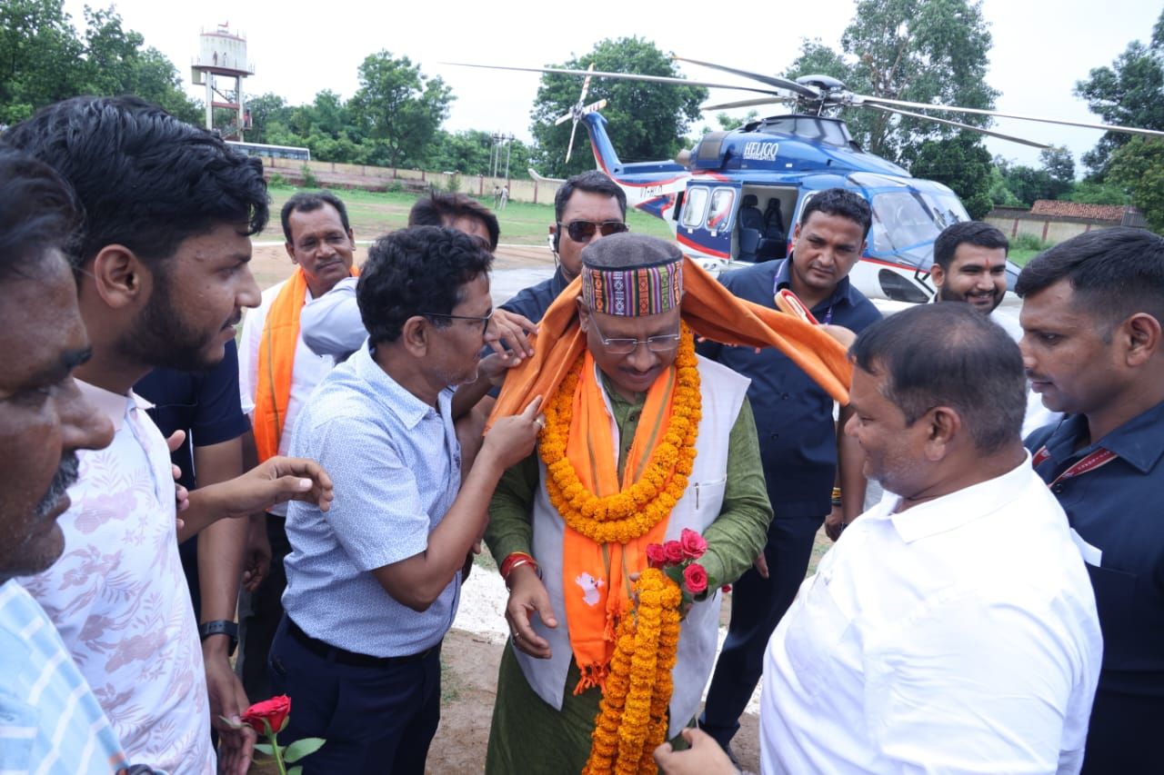रायगढ़ , 21 जुलाई 2024/मुख्यमंत्री श्री विष्णु देव साय के आज रायगढ़ जिले के ग्राम महापल्ली मिनी स्टेडियम हेलीपेड पहुंचने पर जनप्रतिनिधियों, ग्रामीणों और जिला प्रशासन के अधिकारियों ने आत्मीय स्वागत किया। मुख्यमंत्री ग्राम बनोरा में आयोजित श्री गुरू दर्शनम् महोत्सव में शामिल होने के लिए यहां पहुंचे हैं।