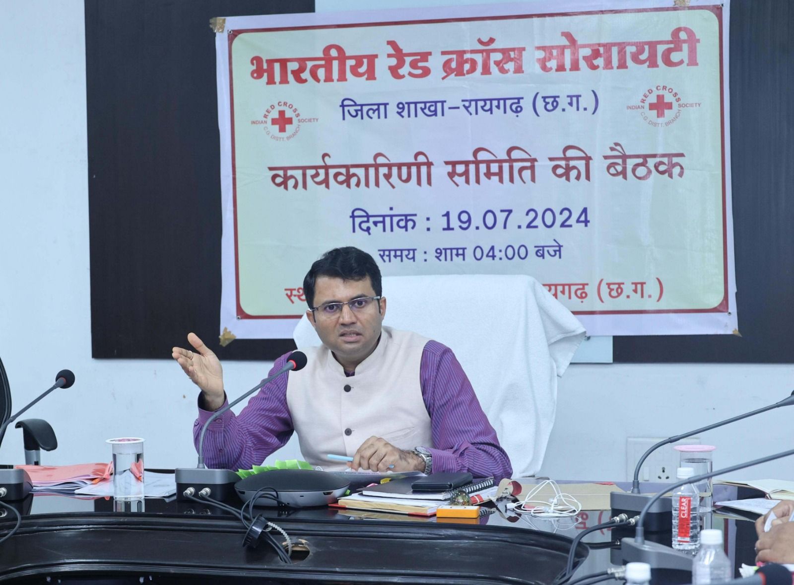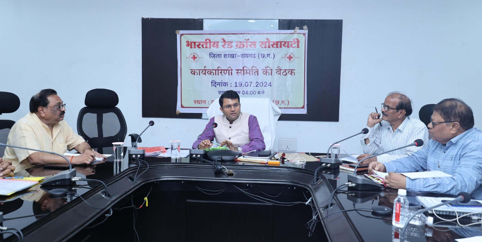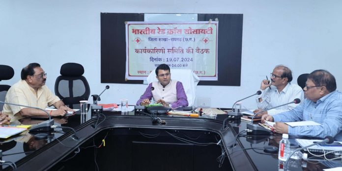 रायगढ़, 22 जुलाई 2024/ कलेक्टर एवं अध्यक्ष भारतीय रेडक्रॉस सोसायटी रायगढ़ श्री कार्तिकेया गोयल की अध्यक्षता में कलेक्टोरेट सभाकक्ष में भारतीय रेडक्रॉस सोसायटी रायगढ़ के कार्यकारिणी समिति की बैठक कलेक्ट्रेट सभाकक्ष में हुई। कलेक्टर श्री गोयल ने रेडक्रॉस सोसाइटी के माध्यम से लोगों को बेहतर सेवा प्रदाय किए जाने के लिए स्वास्थ्य सहित अन्य क्षेत्रों में भी जनभागीदारी की गतिविधियां अधिक से अधिक संचालित करते हुए लोगों के बीच जागरूकता फैलाए जाने की आवश्यकता पर जोर दिया।