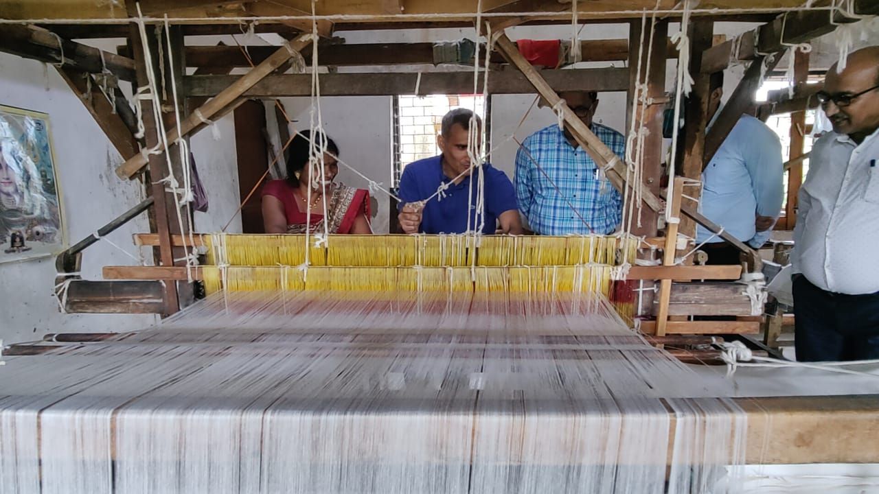 बारिश के बीच बुनकरों के साथ कलेक्टर ने हाथकरघा चलाया और कपड़ा बुना बढ़ाया उत्साह