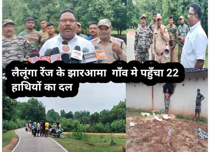 लैलूंगा रेंज के झारआमा गाँव मे पहुँचा 22 हाथियों का दल