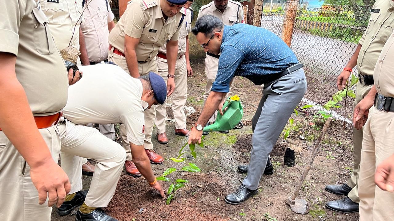 25 जुलाई, रायगढ़ । “एक पेड़ मां के नाम” अभियान के तहत आज दिनांक 25.07.2024 को थाना चक्रधरनगर परिसर की सफाई कर नगर पुलिस अधीक्षक श्री आकाश शुक्ला के साथ थाना चक्रधरनगर के स्टाफ द्वारा वृक्षारोपण किया गया । वृक्षारोपण में नगर पुलिस अधीक्षक आकाश शुक्ला ने आम का पौधा तथा थाना प्रभारी चक्रधरनगर निरीक्षक प्रशांत राव ने कटहल का पौधा लगाया । थाने स्टाफ ने औषधीय और छायादार नीम तथा फलदार अमरूद के पौधों का रोपण किया । नगर पुलिस अधीक्षक ने पुलिसकर्मियों को थाना परिसर में लगाये पौधों की देखरेख करना कहकर निवास स्थान के आसपास भी पौधे लगाने प्रेरित किया गया ।