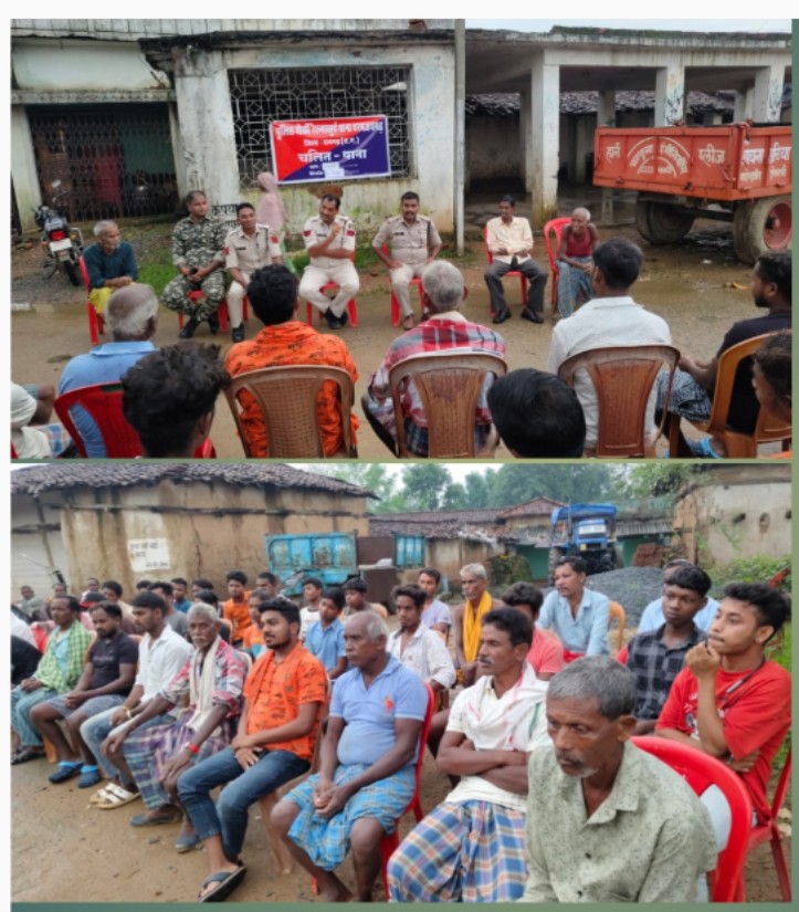 *06 अगस्त, रायगढ़* । पुलिस अधीक्षक श्री दिव्यांग कुमार पटेल के दिशा निर्देशन एवं अतिरिक्त पुलिस अधीक्षक श्री आकाश मरकाम के मार्गदर्शन पर आज पुलिस चौकी रैरूमाखुर्द द्वारा ग्राम बाकारूमा में चलित थाना लगाया गया जिसमें गांव के सरपंच, पंच, कोटवार तथा ग्रामीण मौजूद रहे । चलित थाना में चौकी प्रभारी उप निरीक्षक मनीष कांत द्वारा रहवासियों को वर्तमान में घटित होने वाले साइबर फ्रॉड, सोना-चांदी चमकाने वाले के नाम पर ठगी करने वाले, संदिग्ध फेरी वालों के द्वारा रैकी कर चोरी/लूट की कारित करने वाले अपराध के बारे में जानकारी देकर इस प्रकार के होने वाले अपराधों के रोकथाम के उपाय बताया गया । चौकी प्रभारी ने बरसात के समय जमीन पर सोने से बचने की जानकारी दी जिससे सांप बिच्छू का खतरा होता है । चौकी प्रभारी द्वारा क्षेत्र में मवेशी तस्करी की सूचना पुलिस को देने की बात कही। साथ ही गांव में अवैध शराब, जुआ, सट्टा या अन्य सामाजिक कुरीतियों के प्रति जागरूक रहने की समझाइश भी दी गई। ग्रामीणों के साथ चलित थाना में चौकी प्रभारी एसआई मनीष कांत के साथ प्रधान आरक्षक लक्ष्मी कैवर्त, चिंतामणी कुर्रे व चौकी स्टाफ मौजूद रहे ।