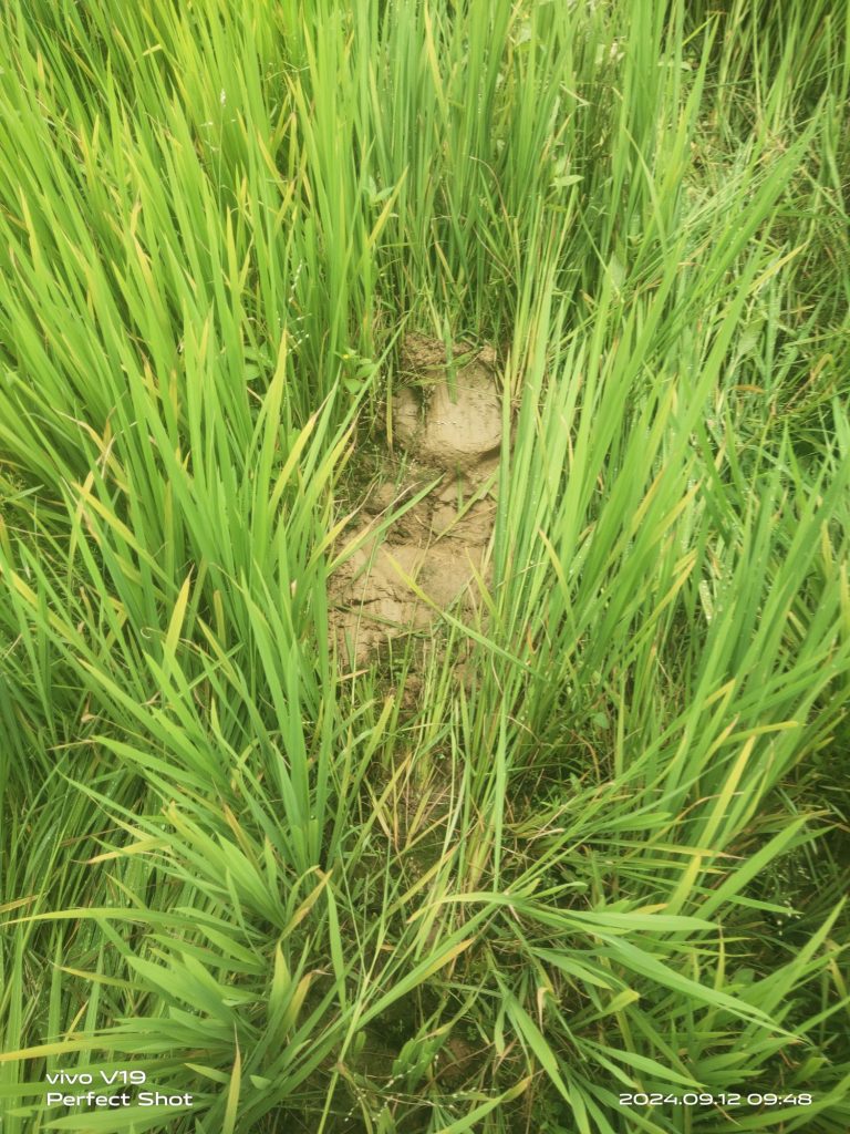 लैलूँगा रेंज बिट बनेकेला में 5 हांथी द्वारा खेत में लगे धान के फसल को पहुँचाया गया नुकसान