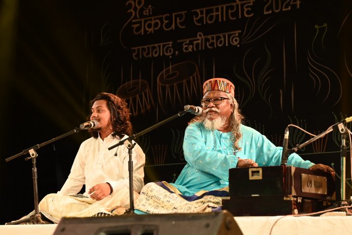 39वें चक्रधर समारोह में सातवें दिन पद्मश्री भारती बंधु की सूफियाना गायन ने उपस्थित दर्शकों को देर रात तक दर्शकों को झूमने के लिए मजबूर किया। कबीर के दोहे को अपने अंदाज में प्रस्तुत कर भारती बंधु और उनकी टीम ने खूब तालियां बटोरी। दर्शकों ने उनकी प्रस्तुति की खूब सराहना की। उन्होंने जरा धीरे-धीरे गाड़ी हाँको…मेरे राम गाड़ी वाले…, मो से नैना मिलाइके…,दमादम मस्त कलन्दर…जैसे गीतों से श्रोताओं को आनंदित किया।