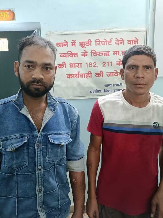घरघोड़ा पुलिस की नागरिकों से अपील है कि किसी भी संदिग्ध गतिविधि की तुरंत सूचना पुलिस को दें ताकि समय पर उचित कार्रवाई की जा सके। पुलिस अधीक्षक श्री दिव्यांग कुमार पटेल के दिशा निर्देशन एवं एसडीओपी धरमजयगढ़ सिद्धांत तिवारी के मार्गदर्शन पर संपूर्ण कार्यवाही में थाना प्रभारी घरघोड़ा निरीक्षक अमित तिवारी, सहायक उप निरीक्षक राकेश मिश्रा, विल्फ्रेड मसीह, प्रधान आरक्षक राजेश उरांव, आरक्षक राजेश राठौर, किशोर राठौर एवं हमराह स्टाफ की विशेष भूमिका रही है ।