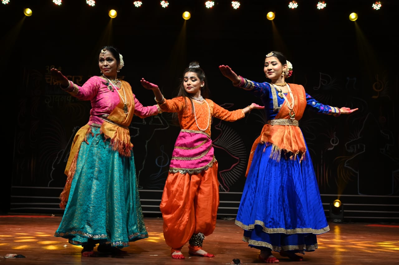 *** 39वें चक्रधर समारोह के आठवें दिन रायपुर की कथक कलाकार सुश्री संगीता कापसे, गीतिका चक्रधर और राधिका शर्मा ने मंच पर रामलला के जीवन दर्शन को नृत्य में प्रस्तुत किया।