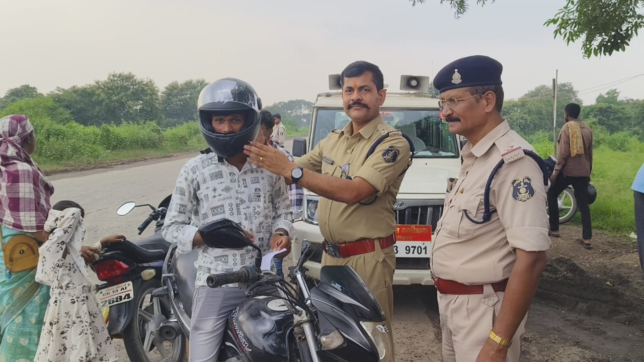 22 सितंबर, रायगढ़ । पुलिस अधीक्षक श्री दिव्यांग कुमार पटेल के दिशा-निर्देशन में जिले के ब्लैक स्पॉट चिन्हित क्षेत्रों में सड़क हादसों को कम करने के उद्देश्य से पुलिस जागरूकता और आवश्यक कार्यवाही की जा रही है। इसी क्रम में आज नेशनल हाईवे 49 पर ग्राम जोरापाली के समीप बिना हेलमेट दुपहिया वाहन चालकों पर मोटर व्हीकल एक्ट के तहत 500/- रुपये की चालानी कार्यवाही की गई, साथ ही नि:शुल्क हेलमेट का वितरण किया गया।