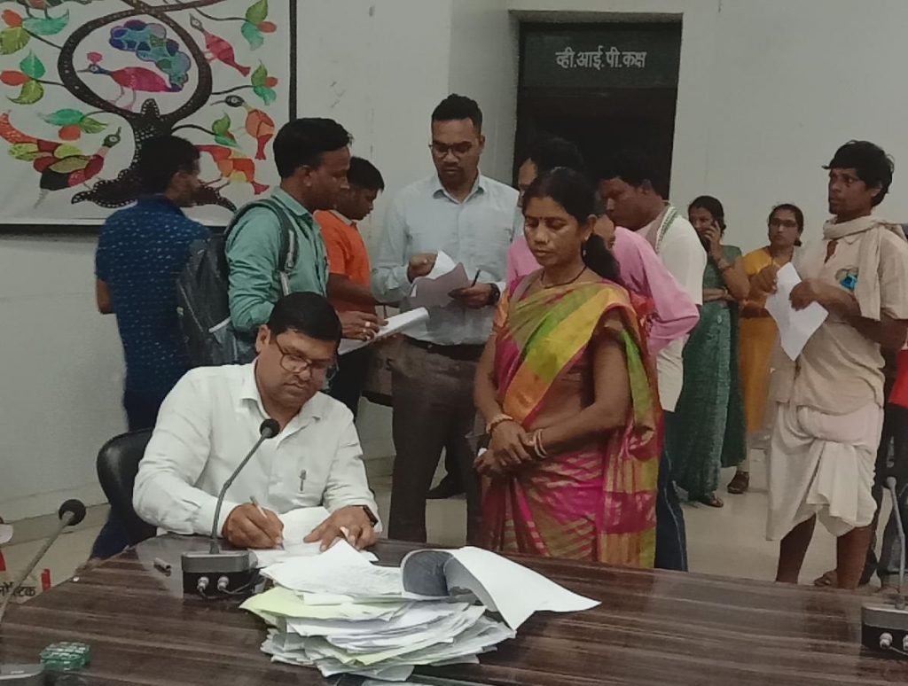 रायगढ़, 24 सितम्बर 2024/ कलेक्टर श्री कार्तिकेया गोयल के निर्देशन में जिला कार्यालय के सृजन सभा कक्ष में आयोजित साप्ताहिक जनदर्शन कार्यक्रम में आज अपर कलेक्टर श्री राजीव कुमार पाण्डेय ने जिले के विभिन्न गांवों से पहुंचे लोगों से मुलाकात की। उन्होंने उनकी मांगों, समस्याओं और शिकायत संबंधी सभी आवेदनों पर संज्ञान लेते हुए निराकरण कराने संबंधित विभाग के अधिकारियों को त्वरित कार्रवाई करने के निर्देश दिए। इस दौरान आयुक्त नगर निगम श्री सुनील कुमार चंद्रवंशी सहित जिला स्तरीय अधिकारी उपस्थित रहे।