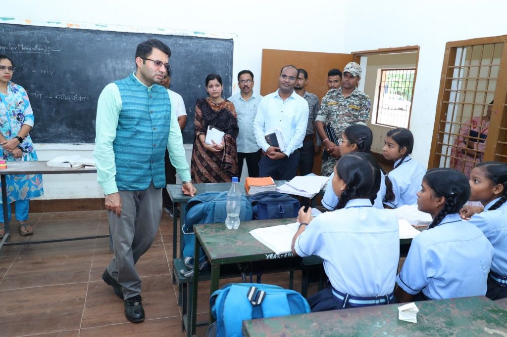 रायगढ़, 25 सितम्बर 2024/ कलेक्टर श्री कार्तिकेया गोयल विकासखंड पुसौर के ग्राम-औरदा में स्थित स्वामी आत्मानंद हिन्दी माध्यम स्कूल एवं हेल्थ एंड वेलनेस सेंटर का औचक निरीक्षण किया। कलेक्टर श्री गोयल निरीक्षण के दौरान स्कूल में शिक्षकों की उपस्थिति पंजी का अवलोकन किया। उन्होंने ग्यारहवीं के क्लास में पहुंचे। वहां उन्होंने बच्चों से उसके भविष्य की योजनाओं और तैयारियों पर चर्चा भी की। गणित और जीव विज्ञान के बच्चों ने बताया कि वे नीट तथा जेईई की तैयारी कर रहे है। इस दौरान कलेक्टर श्री गोयल ने बच्चों से विभिन्न प्रश्न किए जिसका उन्होंने उत्तर भी दिए। उन्होंने बच्चों के शंका का समाधान करते हुए प्रतियोगी परीक्षाओं के तैयारियों के लिए टेस्ट सीरिज का अधिक से अधिक अभ्यास करने के साथ लाईब्रेरी का उपयोग करने को कहा। इस दौरान उन्होंने लाईब्रेरी का निरीक्षण किया और वहां उपलब्ध पुस्तकों की जानकारी ली। अव्यवस्थित लाईब्रेरी को देख कलेक्टर श्री गोयल ने परीक्षाओं के तैयारियों के अनुरूप विद्यार्थियों के लिए व्यवस्थित बैठक व्यवस्था करने के निर्देश दिए। मौके पर कलेक्टर श्री गोयल ने लैब का निरीक्षण भी किया। उन्होंने प्रयोगशाला में उपलब्ध रसायन एवं करवाए जाने वाले प्रयोग की जानकारी ली। उन्होंने टॉयलेट का निरीक्षण करते हुए साफ -सफाई रखने के निर्देश दिए।