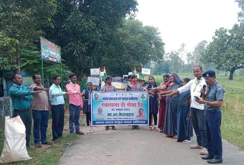 राष्ट्रपिता महात्मा गांधी के जन्म जयंती के उपलक्ष में विकासखंड लैलूंगा के माध्यमिक शाला केराबहार में स्काउट मास्टर कान्हू राम गुप्ता के नेतृत्व में सर्वधर्म प्रार्थना सभा का आयोजन हुआ। बैनर पोस्टर स्लोगन पट्टी और तिरंगे झंडे के साथ स्वच्छता का संदेश लेकर भव्य स्वच्छता रैली निकाला गया गांव, गली, घर, आंगन, सार्वजनिक स्थल को स्वच्छ रखने के लिए और जमीन में प्लास्टिक ना फेंकने के लिए आह्वान किया गया। गांव के मंदिर परिसर एवं तालाब घाट का सफाई किया गया रास्ते में पड़े प्लास्टिक को उठाकर उचित स्थान पर निपटान किया गया। एक पेड़ मां के नाम के तहत शाला परिसर में वृक्षारोपण किया गया। शाला प्रबंधन एवं विकास समिति के अध्यक्ष श्री केशबो पैंकरा ने इस अवसर पर अपने उद्बोधन में कहा कि “वृक्ष लगाकर धरती को हरियाली बनाना सबसे बड़ा मानव धर्म है” कार्यक्रम को सफल बनाने में शाला के प्रभारी प्रधान पाठक भानु लाल नायक, सीएससी प्रमोद पैंकरा, प्राथमिक शाला प्रधान पाठक अरुण गुप्ता, शाला समिति के अध्यक्ष केशबो पैंकरा सदस्य भजन साय, भोज कुमार पैंकरा आंगनवाड़ी कार्यकर्ता गीता पैंकरा, पालकगण का विशेष मार्गदर्शन और सहयोग रहा। कार्यक्रम का संचालन शाला के शिक्षक एवं स्काउट मास्टर कान्हू राम गुप्ता के द्वारा किया गया