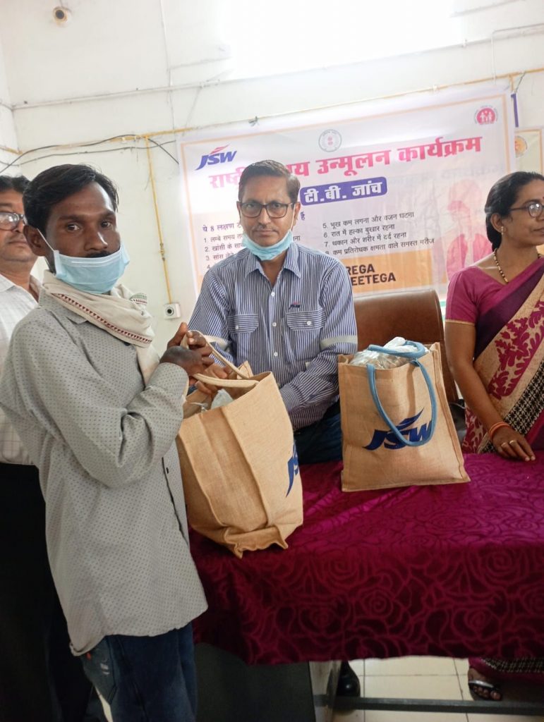 जिला क्षय उन्मूलन अधिकारी डॉ.जय कुमारी चौधरी, बीएमओ डॉ.अभिषेक पटेल की उपस्थिति में जेएसडब्ल्यू एडमिन हेड श्री एसके. मिश्रा एवं अन्य सीएसआर विभाग के पुष्पलता यादव सहित अन्य कर्मचारियों द्वारा खरसिया ब्लॉक के 30 टीबी मरीजों को गोद लेकर फूड बास्केट वितरण किया गया। जिसमें सभी टीबी मरीजों को नियमित दवाई के साथ अतिरिक्त पोषण के संबंध में विस्तृत जानकारी दी गई। जिससे मरीज शीघ्र रोग मुक्त हो सके। उक्त फूड बास्केट वितरण कार्यक्रम में बीपीएम श्री सूरज पटेल, एसटीएस श्रीमती प्रमिला साहू, टीबीएचवी श्री सुमित पटेल एवं अन्य कर्मचारी उपस्थित रहे।
