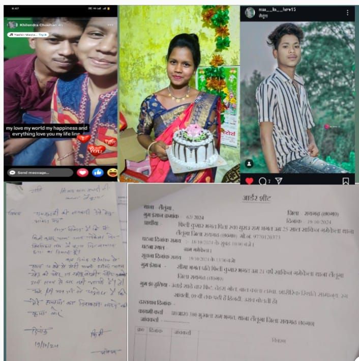 लैलूंगा :- पुलिस थाना लैलूंगा से महज पाँच किलोमीटर की दूरी पर ग्राम गमेकेला गाँव स्थित है । जहाँ से एक विवाहित महिला जो कि एक बच्चे कि माँ है जिसके बिन बताये खेत कि ओर जाने के नाम पर घर से कहीं चले जाने कि थाने में गुमशुदगी कि सूचना मिलने पर पुलिस के द्वारा मामले कि कायमी किए जाने कि बात सामने आई है । वहीं आपको यह भी बता दें कि पूरा मामला ग्राम गमेकेला निवासी फिलि भगत ने बताया कि उसकी पत्नी श्रीमती सीमा भगत 18 अक्टूबर 2024 को सबेरे लगभग 10:00 बजे के आसपास खेत जा रही हूँ बोल के घर से निकली और देर रात तक घर नही आई तो उसके परिजन खोज बीन करना शुरु कर दिए । परन्तु नदारत सीमा भगत का कही कोई पता सुराग नही चला जिसके बाद उसके पति फिलि भगत के द्वारा अगले दिन पुलिस थाना लैलूंगा आकर गिमशुदगी की रिपोर्ट दर्ज कराया गया है । अपने तरीके से फिलि भगत ने खोज बीन कर के देखा तो पता कुछ अज्ञात सूत्रों से चला है कि उसकी पत्नी श्रीमती सीमा भगत किसी दूसरे व्यक्ति के साथ रफू चक्कर हो गई है । फिलहाल प्रथम दृष्ट्या मामला प्रेम प्रसंग का प्रतीत होता है । सीमा भगत और उसके कथित प्रेमी के द्वारा सोशल मीडिया प्लेट फॉर्म के वाट्सएप में स्टेटस लगाया गया है । और फोन को बंद कर रखा गया है । पति फिलि भगत के द्वारा कहा गया है कि दोनों प्रेमी और प्रेमिका को कही भी काम न दिया जाए । और उनका पता ठिकाना बताने वाले 20,000 को नगद इनाम घोषित किया गया है । फिलि भगत ने यह भी बताया कि घर मे रखे सोने, चाँदी और रूपये, पैसे को लेकर भागी है । बताया जा रहा है कि सीमा भगत का प्रेमी ग्राम पंचायत रुडुकेला का रहने वाला है । अब यद देखना होगा कि उपरोक्त गुम इंसान को लैलूंगा पुलिस कब तलक दस्तयाब कर लाती है । यह तो फिलहाल वक्त आने पर ही पता चल सकेगा । उपोरोक्त महिला या उसके कथित प्रेमी युवक का पता लगने पर सूचनाकर्ता निम्न नम्बरों पर संपर्क करें ! फिली भगत गुमशुदा महिला का पति मो. 9770120373, परिजन संगीता भगत मो. 9303816865, सुनील भगत मो. 9131054363, प्रह्लाद भगत मो. 7049421919