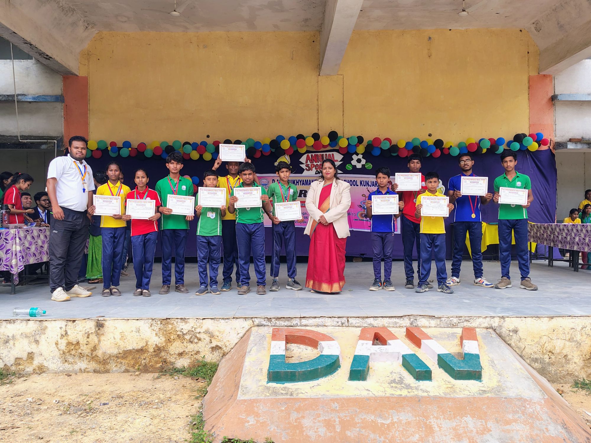 डीएवी मुख्यमंत्री पब्लिक स्कूल कुंजारा लैलूंगा में दो दिवसीय वार्षिक खेल उत्सव का आयोजन बड़े धूमधाम से किया गया।जिसमें प्रथम दिवस में दीपावली महोत्सव के साथ कार्यक्रम की शुरुआत की गई। कार्यक्रम का आरंभ विद्यालय के प्राचार्या अर्चना चौधरी के कर कमलों द्वारा मां शारदे एवं प्रभु श्री राम के छाया चित्र के समक्ष दीप प्रज्वलित कर किया गया। तत्पश्चात कक्षा एल के जी से लेकर कक्षा दूसरी तक के छात्र छात्राओं द्वारा श्री राम और माता सीता की झांकी निकाली गई । तथा कक्षा तीसरी से कक्षा पांचवीं तक के छात्र छात्राओं द्वारा कार्ड मैंकिग कार्यक्रम किया गया। एवं कक्षा छठवीं से लेकर कक्षा आठवीं तक के छात्र छात्राओं द्वारा दिया डेकोरेट एवं कक्षा नवमी से कक्षा बारहवीं तक के छात्र छात्राओं द्वारा रंगोली प्रतियोगिता का कार्यक्रम किया गया। जिसमे सभी छात्र छात्राओं में बढ़चढ़ कर हिस्सा लिया । उसके पश्चात खेल प्रतियोगिता का आयोजन किया गया जिसमें कक्षा एल के जी से कक्षा दूसरी तक के बच्चों के लिए स्पून रेस , बिस्किट रेस एवं कक्षा तीसरी से कक्षा पांचवीं तक के बच्चों के लिए स्पून रेस, सैक रेस ।कक्षा छठवीं से कक्षा आठवीं तक के बच्चों के लिए पचास मीटर रेस, खो खो एवं कक्षा नवमी से कक्षा बारहवीं तक के बच्चों के लिए सौ मीटर रेस,खो खो, कबड्डी,का कार्यक्रम किया गया जिसमें सभी छात्र छात्राओं ने भाग लिया।खो खो एवं कबड्डी खेल ग़ल्स टीम में विरजानन्द, एवं बॉयस ग्रुप में दयानंद, विजेता रहे । कार्यक्रम के मुख्य अतिथि लैलूंगा थाना टी आई राजेश जांगड़े एवं साथी रहे। कार्यक्रम का संचालन विद्यालय के क्रीड़ा शिक्षक सूरज कन्नौजिया द्वारा किया गया तथा विद्यालय के सभी शिक्षकों और विद्यालय के नॉन टीचिंग स्टाफ ने विशेष योगदान दिया एवं कक्षा ग्यारहवीं एवं बारहवीं के छात्रों ने इस उत्सव में विशेष योगदान दिया। कार्यक्रम का समापन विद्यालय की प्राचार्या अर्चना चौधरी द्वारा बच्चों को शुभआशीर्वचन एवं मेडल और प्रमाण पत्र देकर किया गया।