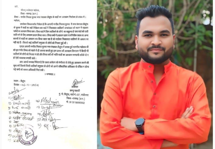 लैलूंगा/आगामी नगरीय निकाय चुनाव में नगर पंचायत लैलूंगा के चुनाव में वार्डों का सही निरीक्षण कर वार्ड में निवासरत जातिवर्ग जनसंख्या को ध्यान में रखकर पार्षदों का आरक्षण किया जाय। जिस वार्ड में जिन जातिवर्ग के लोंगो का बाहुल्य हो उस वार्ड को उसी जाति वर्ग के लिए आरक्षण प्रदान किया जाय। विगत वर्षों में प्रशासन द्वारा राजनितीक दबाव या अन्य कारणों से वार्डो का आरक्षण तय किया जाता रहा है जो वार्डवार निवासरत जातिवर्ग के आधार पर नहीं रहा है। जिससे कई जातिवर्ग समुदाय के लोगों को निराशा हुई थी। एतएव आगामी नगरीय निकाय चुनाव नगर पंचायत लैलूंगा में समय पूर्व माननीय महोदय जी को इस गंभीर विषय को पहले से ही अवगत कराते हुए इस प्रकार की आरक्षण विभाजन में किसी भी जातिवर्ग के लोगों को निराशा ना हो और विगत वर्षों की भांति वार्डो का आरक्षण मनमानी तरीके से न हो ऐसी व्यवस्था बनायी जावे । जिससे किसी जातिवर्ग समुदाय के लोगों को अपने संवैधानिक अधिकार से वंचित न होना पड़े सभी को समान अधिकार मिल सके। आपको बता दें शम्भू सारथी लैलूंगा में भाजयुमो के उभरते हुए युवा नेता है । जो कि बिगत कई वर्षो से भाजपा के कार्यकर्ता के रूप में कार्य करते हुए, भाजपा अ.जा. मोर्चा जिला रायगढ़ में कोषाध्यक्ष पद पर कार्यरत हैं।