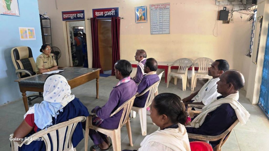 09 नवंबर, रायगढ़ । पुलिस अधीक्षक श्री दिव्यांग कुमार पटेल के निर्देशनु पर, कोतरारोड़ थाना प्रभारी निरीक्षक त्रिनाथ त्रिपाठी और धरमजयगढ़ थाना प्रभारी निरीक्षक कमला पुसाम ठाकुर ने क्षेत्र के ग्राम कोटवारों के साथ थाने में बैठक की। बैठक का उद्देश्य ग्राम सुरक्षा को मजबूत करना, संभावित अपराधों से बचाव के उपायों पर चर्चा करना और गांव में शांति और सौहार्द बनाए रखना था।