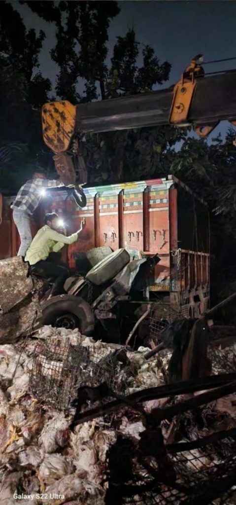 आयरन फाइंस लोडेड ट्रक और मुर्गियों से भरी पिकअप में भिड़ंत, दो युवकों की मौके पर मौत, सैकड़ों मुर्गियों की भी जान गईं, घटना का