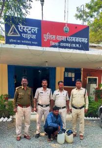 ग्राम पंडरीपानी में धरमजयगढ़ पुलिस ने 15 लीटर अवैध महुआ शराब के साथ आरोपी पकड़ा