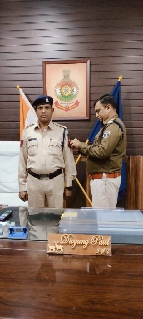 रायगढ़ के 17 आरक्षक हुए प्रधान आरक्षक के पद पर पदोन्नत, एसपी ने बांह पर फीती लगाकर दी शुभकामनाएं