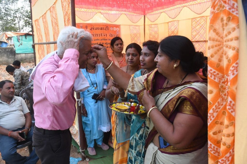 4. जेंडर संसाधन केंद्र (संगवारी) का उद्घाटन मुख्य अतिथि निराकार पटेल और त्रिनाथ त्रिपाठी द्वारा किया गया।