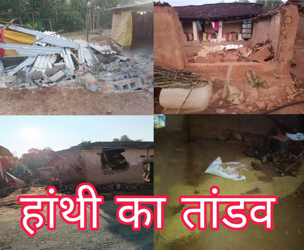 1 नग हांथी ने मचाया तांडव 2 घरों को तोड़कर पहुंचाया नुकसान