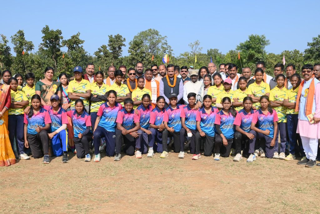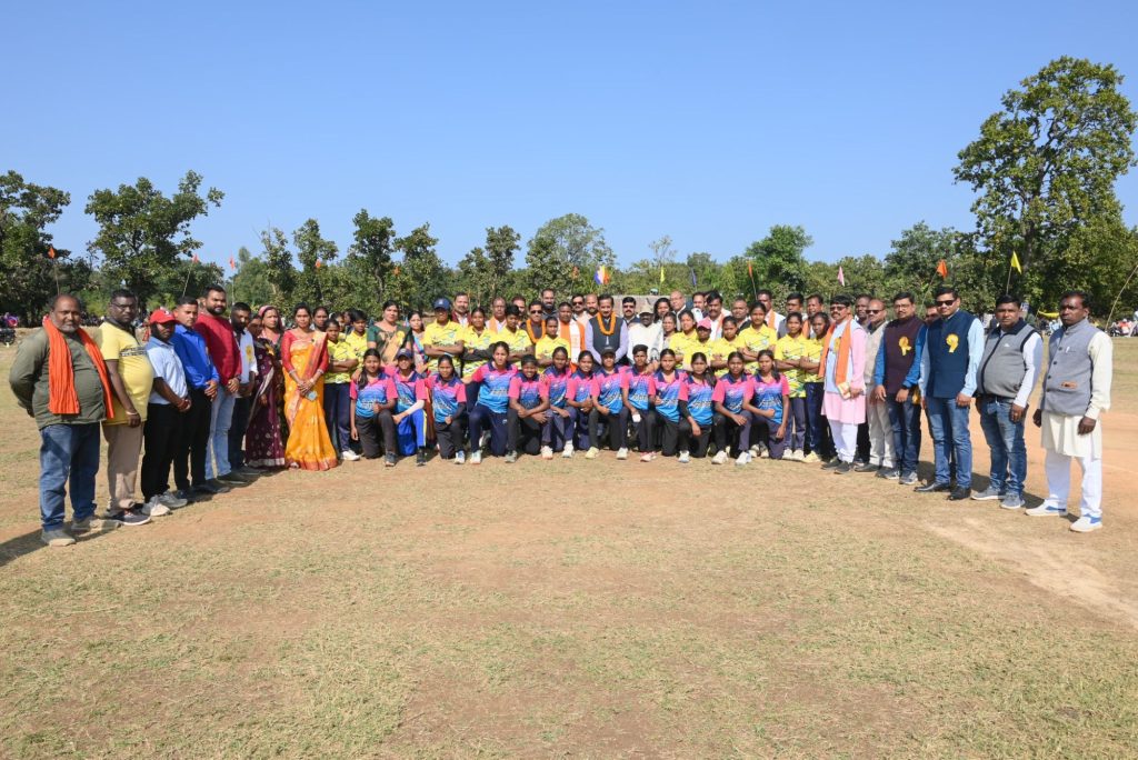 लैलूंगा रायगढ़ : लैलूंगा के झरन ग्राम पंचायत में प्रतिवर्ष की भांति इस वर्ष भी रानी दुर्गावती बालिका क्रिकेट प्रतियोगिता आयोजित की गई इस प्रतियोगिता में मुख्य अतिथि बतौर सांसद देवेंद्र प्रताप अपने निर्धारित समय पर खेल मैदान पहुंचते हैं इस प्रतियोगिता के फाउंडर रवि भगत एवं शांत भगत ने अपने टीम के साथ उनका जयमाल एवं पुष्पगुच्छ से स्वागत किया एवं उन्हें मंच तक लेकर आए और मंचासीन कराया