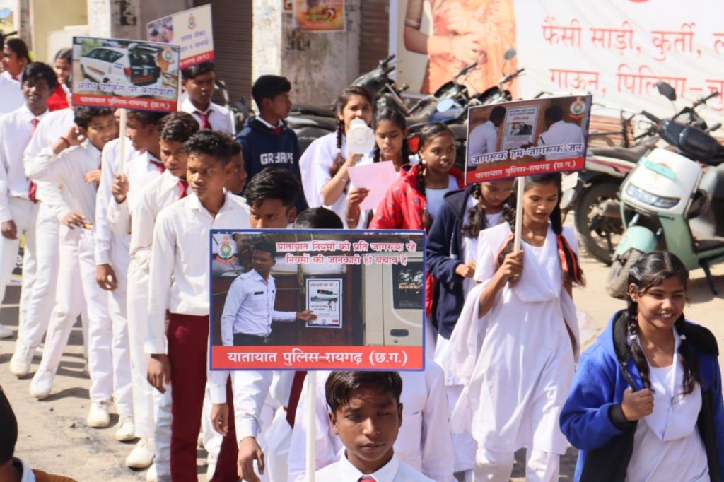 यातायात जागरूकता में स्कूली बच्चों का बड़ा कदम: रैली, नाटक और संदेशों से गूंजा रायगढ़