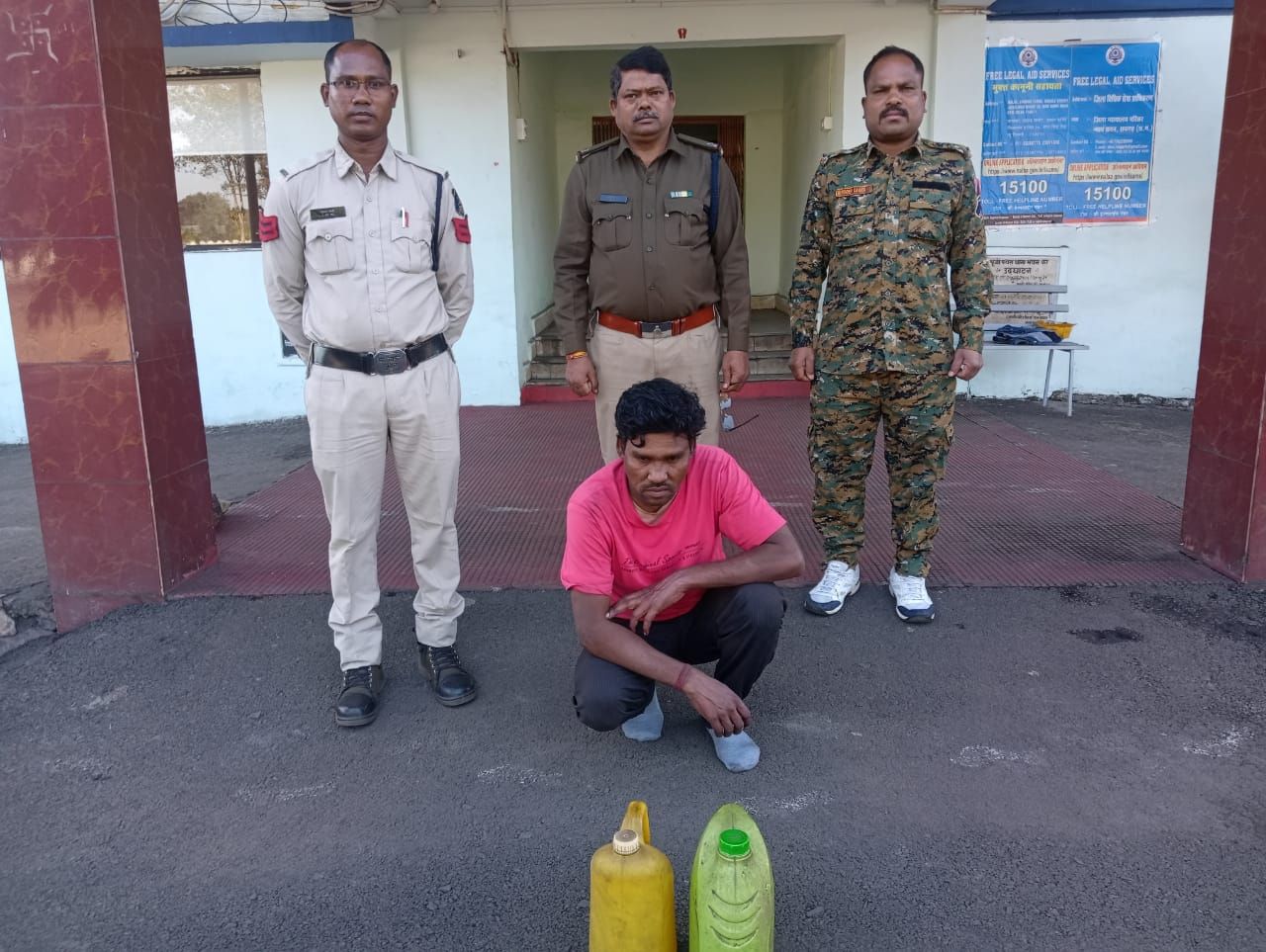 ग्राम तराईमाल में अवैध महुआ शराब पर पूंजीपथरा पुलिस की रेड, 10 लीटर शराब जब्त, एक गिरफ्तार