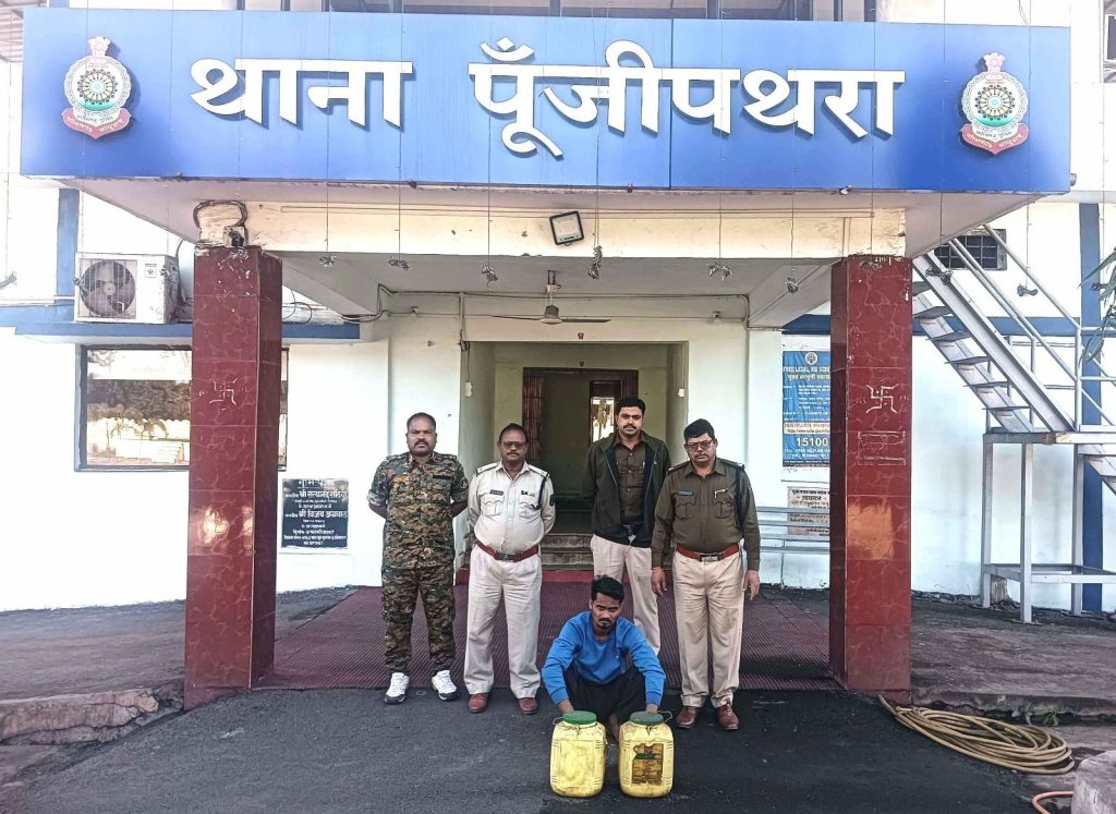पूंजीपथरा पुलिस की अवैध शराब पर कार्रवाई जारी: गेरवानी ईंट भट्ठे पर छापेमार में 30 लीटर महुआ शराब के साथ एक आरोपी गिरफ्तार