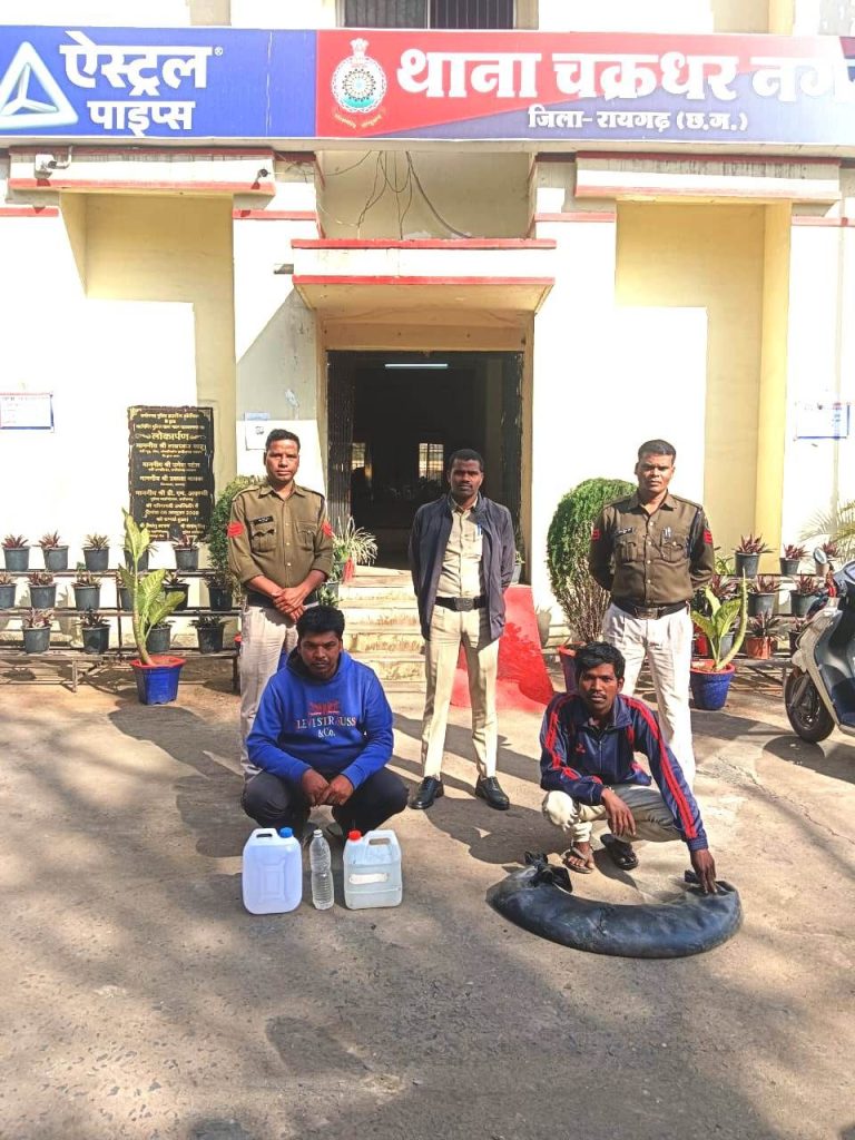 अवैध शराब पर चक्रधरनगर पुलिस की तबाड़तोड़ कार्रवाई : दो स्थानों पर छापेमारी, 31 लीटर महुआ शराब जब्त, दो आरोपी गिरफ्तार