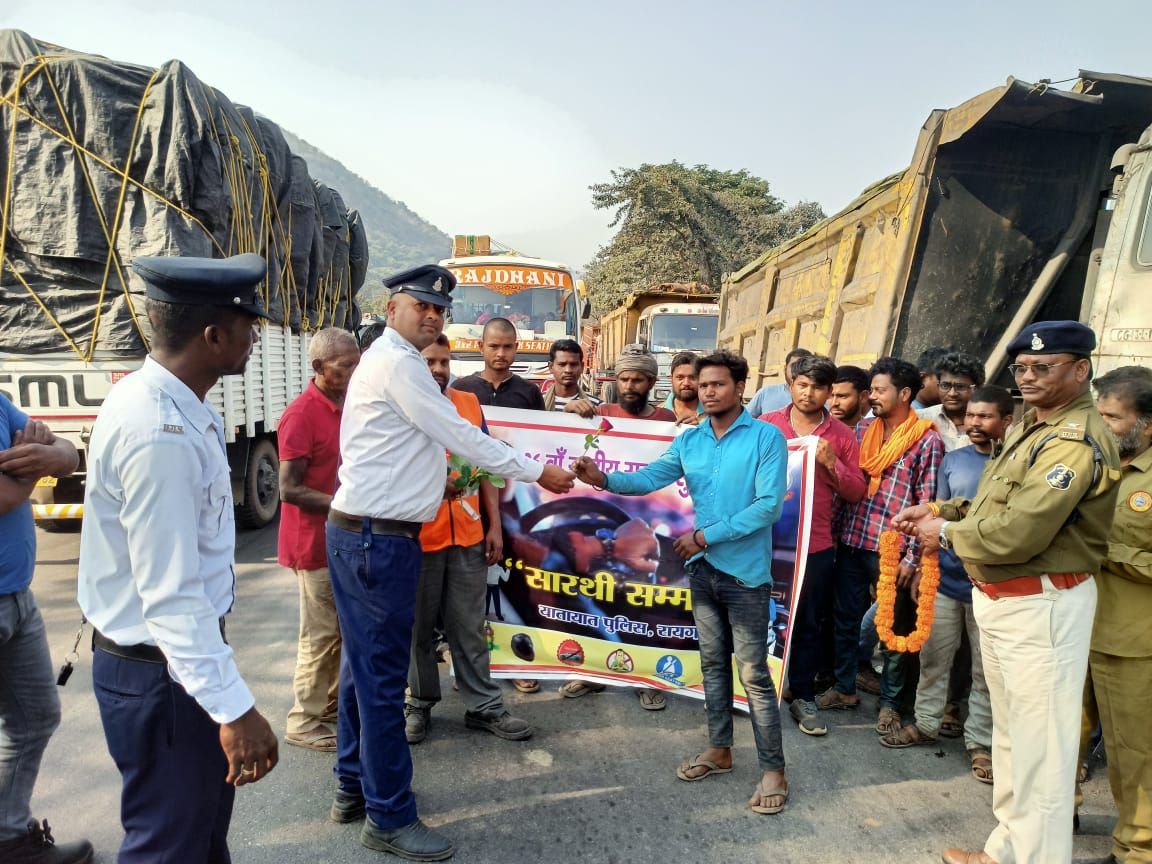 “सारथी सम्मान” : ट्रैफिक नियमों का पालन करने वाले वाहन चालकों को रायगढ़ पुलिस ने किया सम्मानित