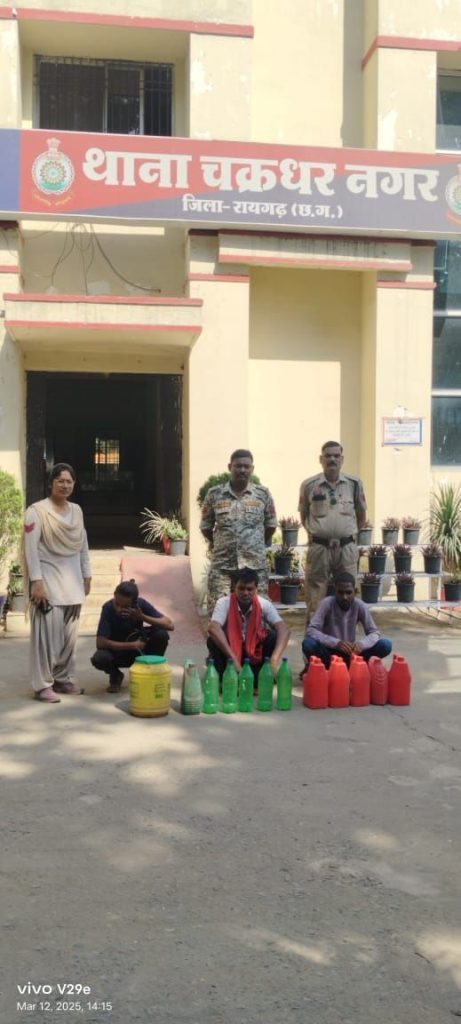 अवैध शराब पर कार्यवाही : चक्रधरनगर पुलिस की ताबड़तोड़ कार्रवाई अवैध शराब के खिलाफ तीन गिरफ्तार, 52 लीटर शराब जब्त