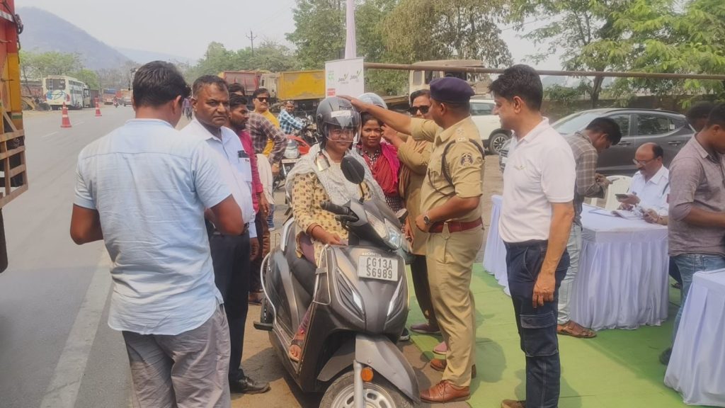 रायगढ़ पुलिस का सड़क सुरक्षा अभियान, बिना हेलमेट चालकों पर कार्रवाई के साथ वितरित किए गए हेलमेट