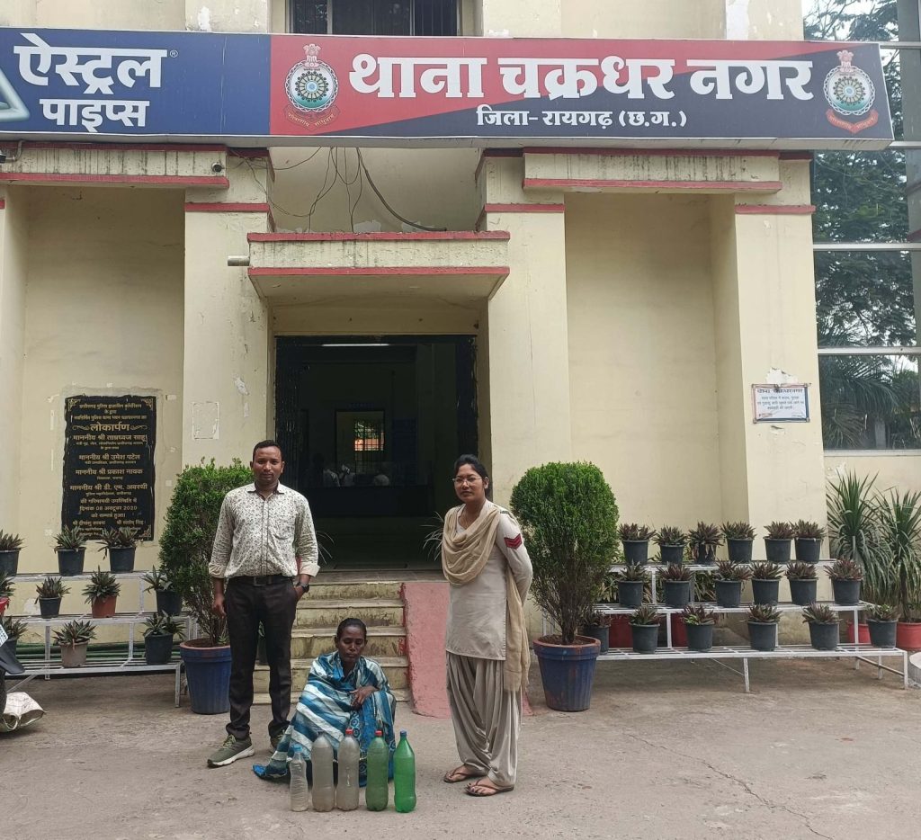 दूसरी कार्रवाई आज सुबह टीआई प्रशांत राव के नेतृत्व में चक्रधरनगर पुलिस ने ग्राम छोटे रेगड़ा में की। सूचना के आधार पर मंगली उरांव (45 वर्ष), निवासी छोटे रेगड़ा के घर पर छापेमारी की गई, जहां से 09 लीटर महुआ शराब (कीमत ₹1800) जब्त की गई। पूछताछ में महिला ने शराब बिक्री के लिए रखने की बात स्वीकार की।