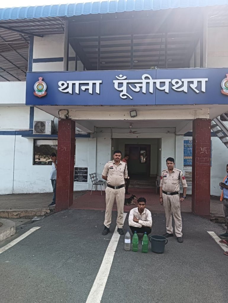 अवैध शराब के खिलाफ पूंजीपथरा पुलिस का अभियान, 10 लीटर महुआ शराब के साथ आरोपी गिरफ्तार