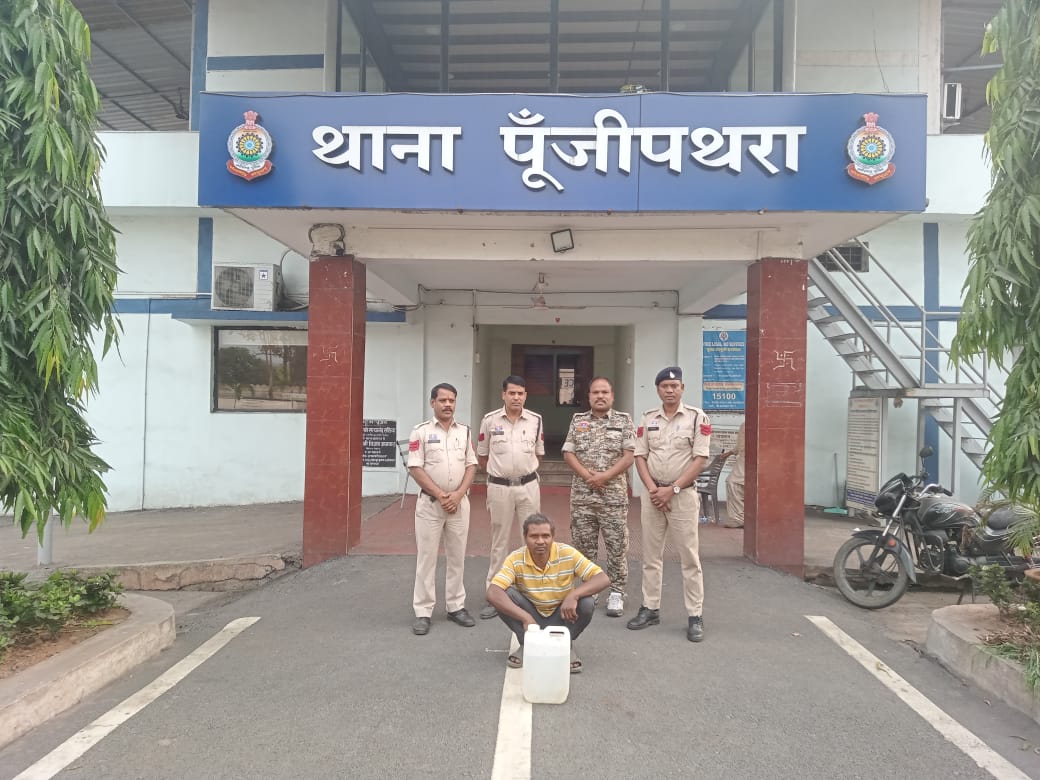 अवैध शराब बिक्री की सूचना पर पूंजीपथरा पुलिस की कार्रवाई, 10 लीटर महुआ शराब के साथ आरोपी गिरफ्तार