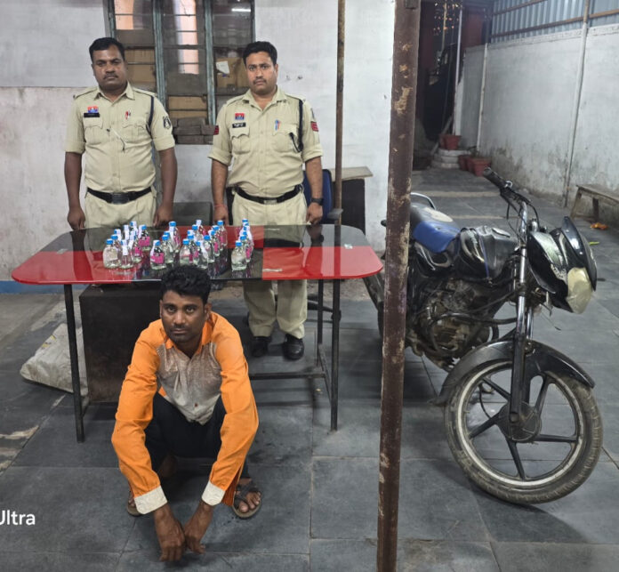 जूटमिल पुलिस की चौकसी में दुर्गा चौक पर शराब तस्कर धराया – 30 पाव देशी शराब और बाइक जब्त
