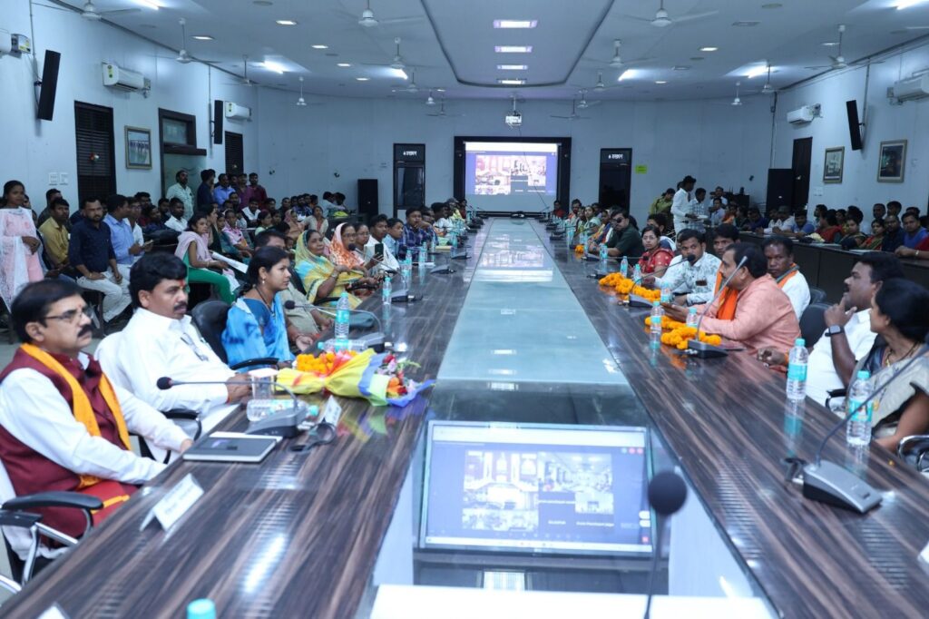 रायगढ़, 14 अप्रैल 2025/ संविधान निर्माता बाबा साहेब डॉ.भीमराव अंबेडकर की जयंती के अवसर पर आज छत्तीसगढ़ शासन द्वारा सामाजिक समरसता दिवस के रूप में मनाया गया। आयोजित कार्यक्रम में मुख्यमंत्री श्री विष्णुदेव साय, उप मुख्यमंत्री श्री विजय शर्मा सहित अन्य मंत्री वर्चुअल रूप से जुड़े रहे। इसी क्रम में रायगढ़ कलेक्टोरेट के सृजन सभाकक्ष में जिला स्तरीय सामाजिक समरसता दिवस का आयोजन किया गया। जिसमें महापौर नगर निगम श्री जीवर्धन चौहान, सभापति श्री डिग्रीलाल साहू, जिला पंचायत उपाध्यक्ष श्री दीपक सिदार, समस्त जनपद अध्यक्ष एवं उपाध्यक्ष, सरपंच सहित जनप्रतिनिधि उपस्थित रहे।