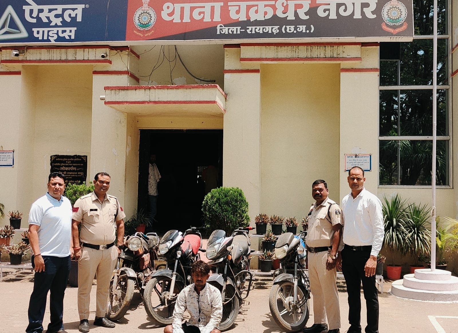 रायगढ़ में बाइक चोरी के अंतर जिला गिरोह का एक और आरोपी गिरफ्तार, चार और बाइकें जब्त