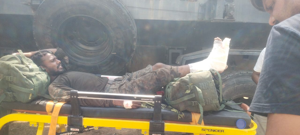 गलगम से कर्रेगुट्टा पहाड़ी की तरफ़ जा रहे जवान आए आईईडी ब्लास्ट की जद में।