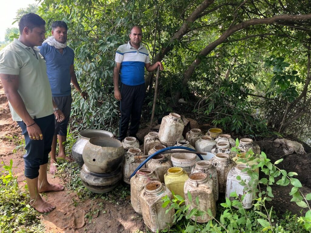 पुलिस को मौके पर करीब 50 से 60 प्लास्टिक डिब्बों में बड़ी मात्रा में महुआ पास रखा मिला, जिसे कुछ डिब्बे जमीन में गाड़कर भी छिपाया गया था। पुलिस टीम ने मौके पर ही सभी डिब्बों को बाहर निकालकर महुआ पास का नष्टीकरण किया। कार्रवाई के दौरान गांव में मुनादी कर ग्रामीणों को चेतावनी दी गई कि यदि किसी ने भविष्य में अवैध शराब बनाने की कोशिश की तो उसके खिलाफ कठोर कानूनी कार्रवाई की जाएगी।