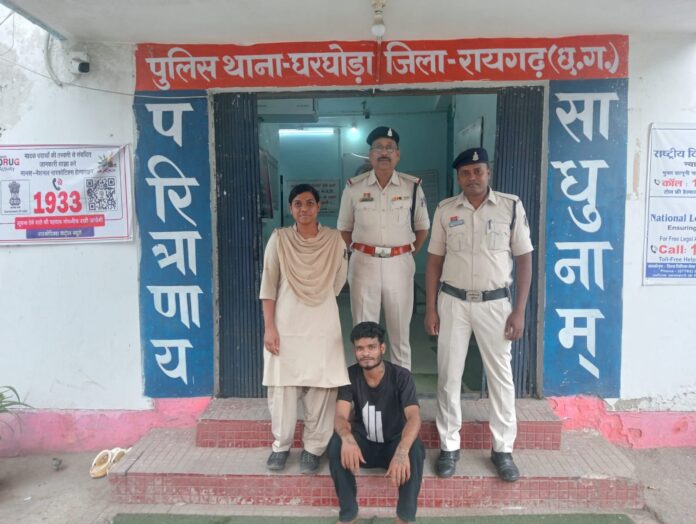 रायगढ़ 22 जुलाई, 2025 जिले में पुलिस अधीक्षक श्री दिव्यांग पटेल के दिशा निर्देशन पर चलाए जा रहे हैं मुस्कान अभियान में घरघोड़ा पुलिस ने थाना क्षेत्र से लापता हुई नाबालिग बालिका को झारखंड-उड़ीसा सीमा से लगे ओड़िशा राज्य के झारसुगड़ा जिले के सारसमाल गांव से सकुशल बरामद कर लिया है। इस मामले में पुलिस ने आरोपी युवक राहुल सतनामी को गिरफ्तार कर न्यायिक रिमांड पर भेज दिया है।