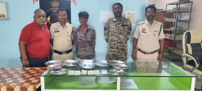 धरमजयगढ़ में बर्तन दुकान में चोरी करने वाला आरोपी गिरफ्तार, CCTV से हुई पहचान, बर्तन व नगदी बरामद