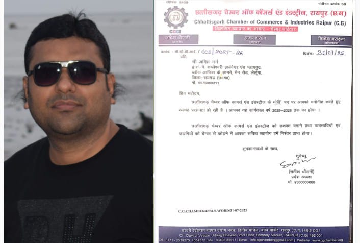 छत्तीसगढ़ चेम्बर ऑफ कॉमर्स एंड इंडस्ट्रीज द्वारा जारी आधिकारिक पत्र में यह जानकारी दी गई है कि अमित गर्ग के अनुभव और नेतृत्व से चेम्बर को नई दिशा मिलेगी। पत्र में यह भी उल्लेख किया गया है कि वे न केवल व्यापारियों और उद्यमियों की समस्याओं को समझते हैं, बल्कि उन्हें समाधान की दिशा में प्रेरित भी करते हैं।