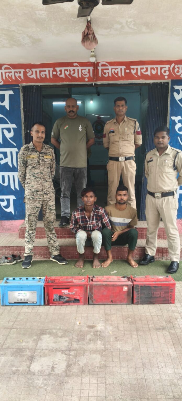 ●बैटरी चोरों पर घरघोड़ा पुलिस ने कसा शिकंजा, चोरी की 4 बैटरी के साथ दो आरोपी गिरफ्तार, चोरी के दो मामलों का खुलासा